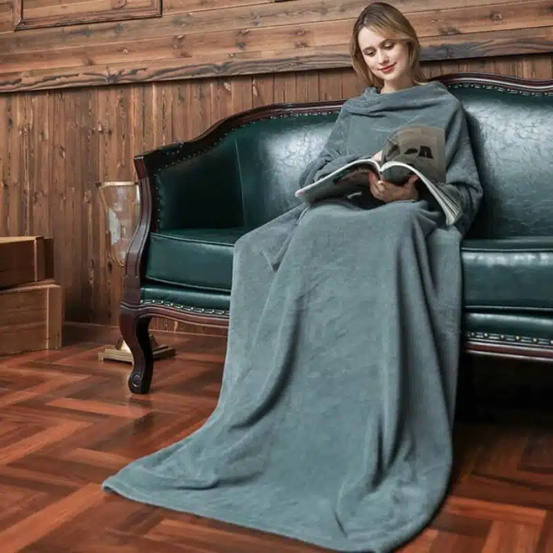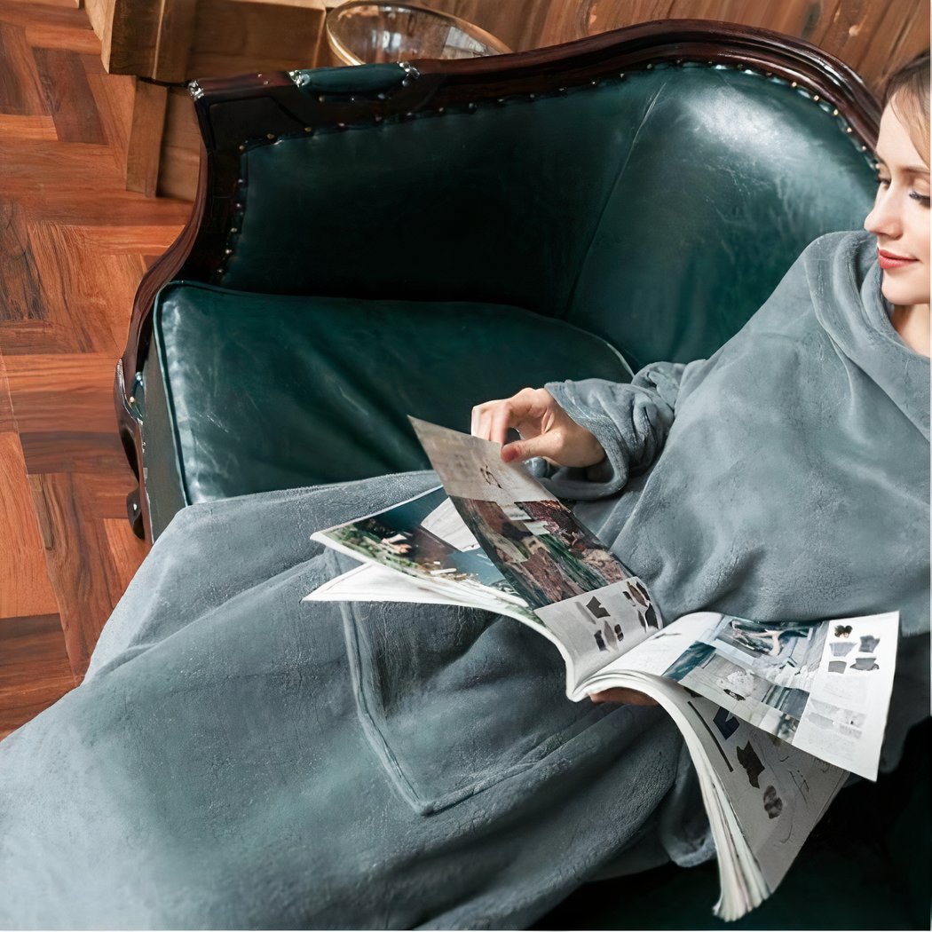 Cette couverture géante grise à manches est une couverture moelleuse et douce qui est parfaite pour se blottir dedans. Grâce à ses manches intégrées, elle peut vous accompagner partout ! Les manches sont conçues pour s’adapter parfaitement à votre corps, vous permettant ainsi de vous relaxer et de profiter pleinement de votre temps libre. La couverture est assez grande pour que vous puissiez vous y blottir confortablement seul ou accompagné. Elle est parfaite pour les soirées fraîches ou pour vous offrir un moment de détente et de bien-être.