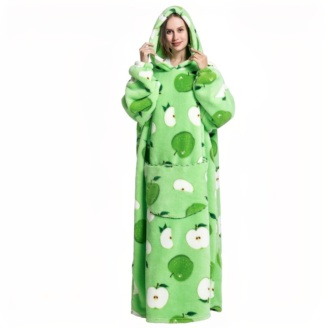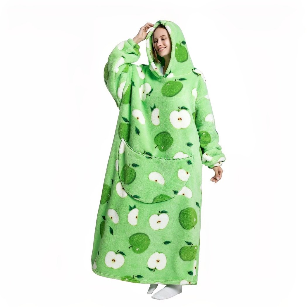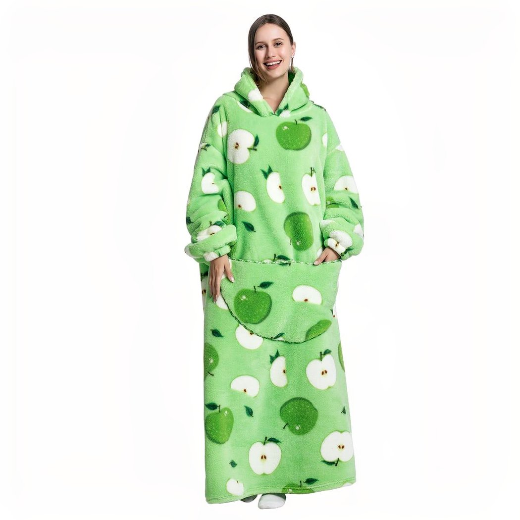 La taille généreuse de cette couverture vous offrira la liberté de bouger librement, sans être encombré. Le tissu épais et doux est doté d’un motif de pommes très mignon et amusant qui rend cette couverture très originale. La poche intégrée sur le devant est parfaite pour y ranger petits objets en toute sûreté tels que de petits encas, un téléphone ou d’autres petits objets du quotidien.