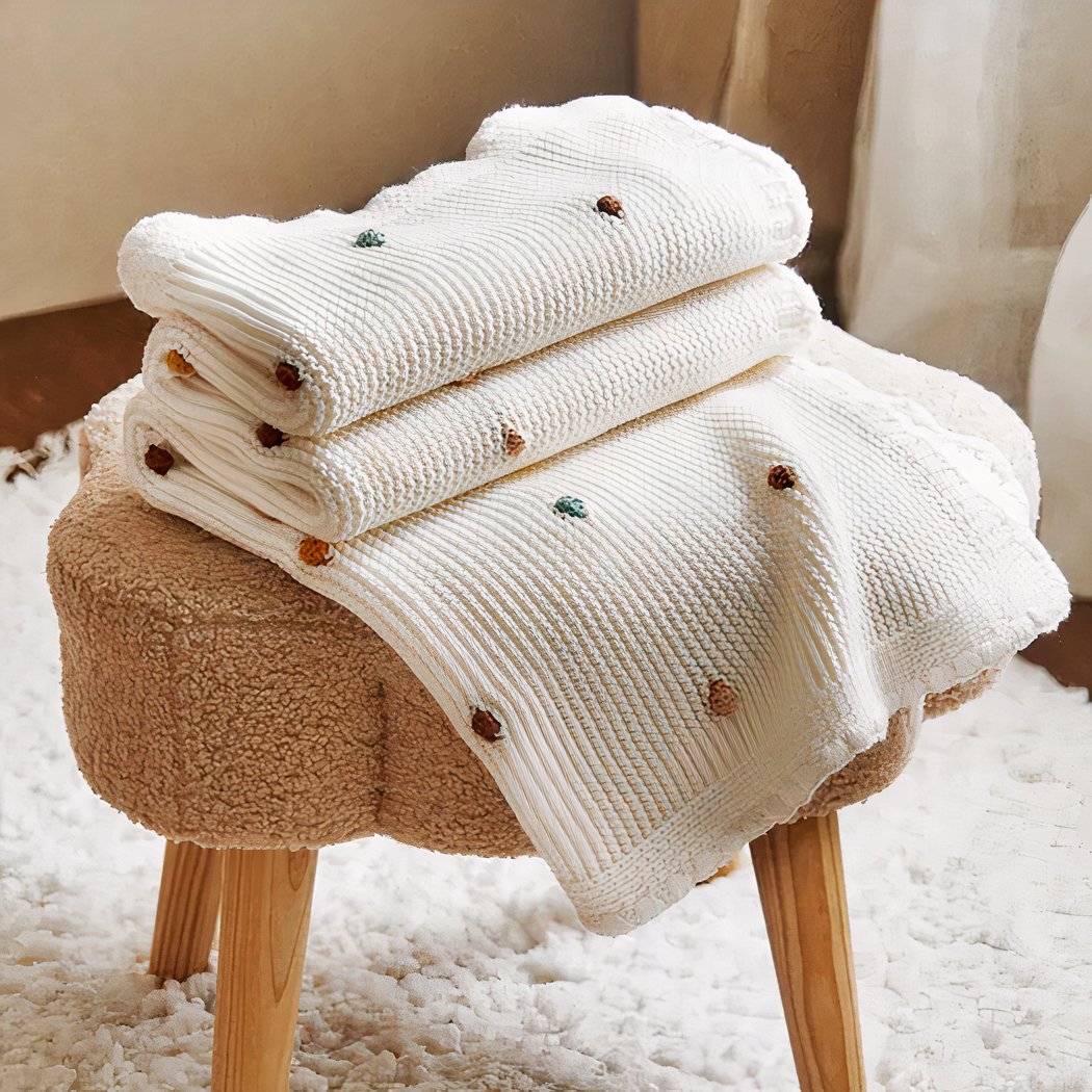 Cette magnifique couverture tricotée en coton au crochet pour la sieste de bébé est l’accessoire indispensable pour garder votre bébé au chaud et à l’aise pendant sa sieste. La couverture présente un design unique tricot au crochet avec des détails délicats offrant une finition impeccable qui complètera parfaitement le lit de bébé.