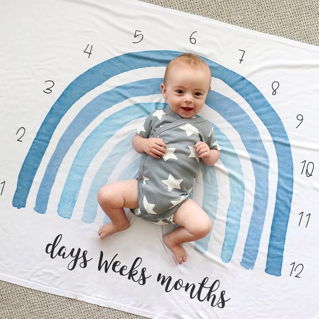 Vous recherchez un cadeau de naissance original ? Optez pour cette couverture qui fait office de fond de photographie : installez simplement le bébé dessus, à même le sol ou sur un lit double, entourez le mois correspondant à son âge et prenez la photo de haut ! Adorables clichés garantis !
