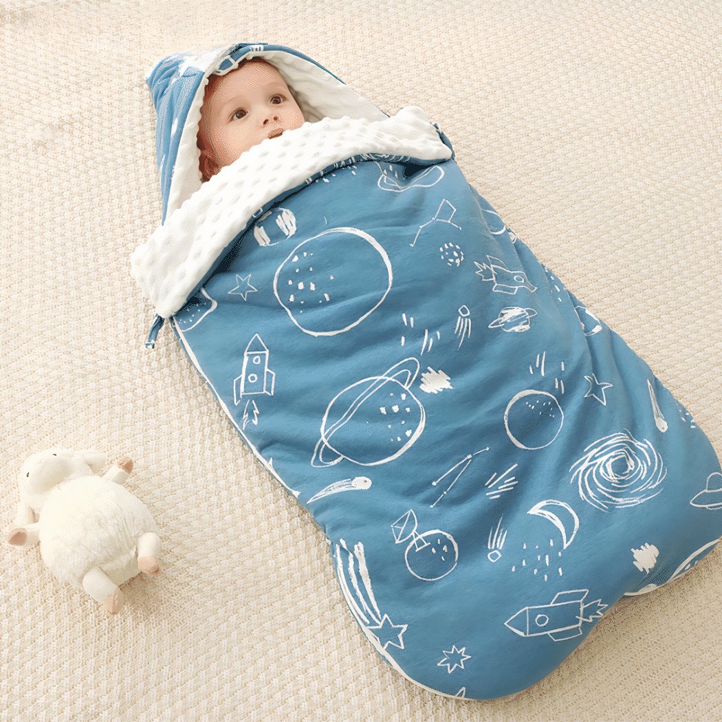 La nuit tombe, les étoiles scintillent, et votre bout de chou est prêt à s’envoler dans le monde des rêves. Avec ses motifs fascinants de planètes et fusées, cette couverture bébé crée un environnement réconfortant. La capuche ajoutée garde la tête de votre petit bien au chaud lors de ses aventures spatiales nocturnes.