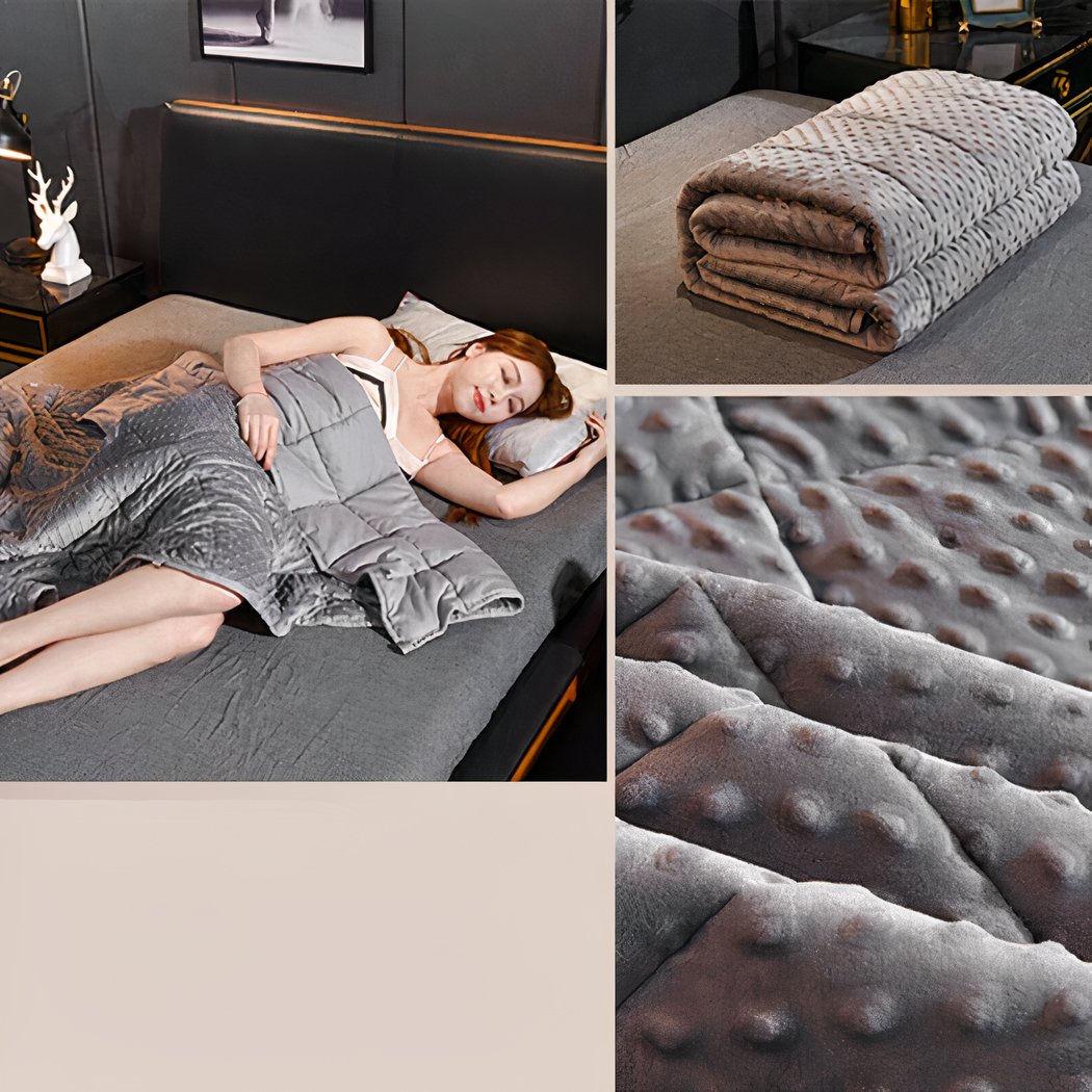 Cette couverture pondérée en velours avec des bulles est faite d’un matériau doux et résistant doté d’une grande respirabilité. Elle est remplie de petites billes pour créer un effet de poids qui aide à fournir une sensation de calme et de détente. La densité supplémentaire, les boules sensorielles spongieuses et la mousse visco-réactive offrent une thérapie à basse intensité, prolongeant le sentiment apaisant des massothérapeutes professionnels.