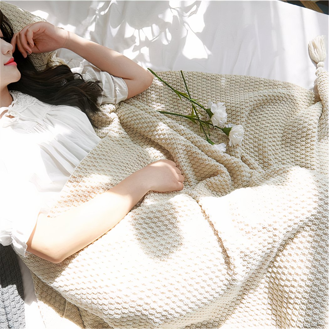 Cette couverture tricotée en acrylique est le compagnon idéal pour rester au chaud durant les jours les plus frais. Sa texture moelleuse vous amènera à vous blottir dedans, que ce soit pour regarder la télé, lire un livre ou faire une sieste. Vous pourrez la poser sur votre lit pour plus de chaleur la nuit ou la mettre sur un fauteuil ou sur vous, où que vous soyez.