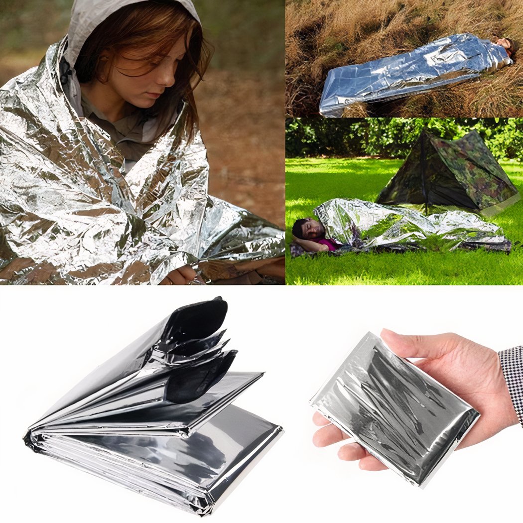 Cette couverture ressemble à une fine feuille d’aluminium et est pourtant très résistante. Sa matière, en plus de retenir la chaleur de votre corps, est coupe-vent, imperméable et anti-UV, vous protégeant ainsi de toutes les conditions climatiques. Une protection optimale donc qui pourra aussi vous servir à envoyer des signaux aux secouristes grâce à sa matière réfléchissante.