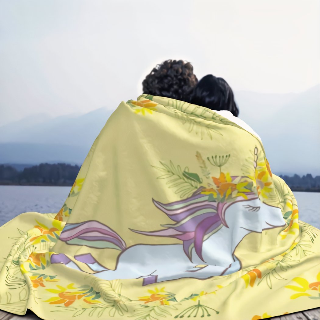 Cette belle couverture jaune est la couverture parfaite pour les amateurs de licornes ! Enveloppez-vous dans l’amour magique avec cette couverture en fourrure douce, luxueuse et originale. Elle sera idéale pour se blottir au coin du feu ou tenir chaud avant d’aller dormir. Sa texture moelleuse offre une sensation incroyable qui vous gardera à l’abri du froid toute la nuit.