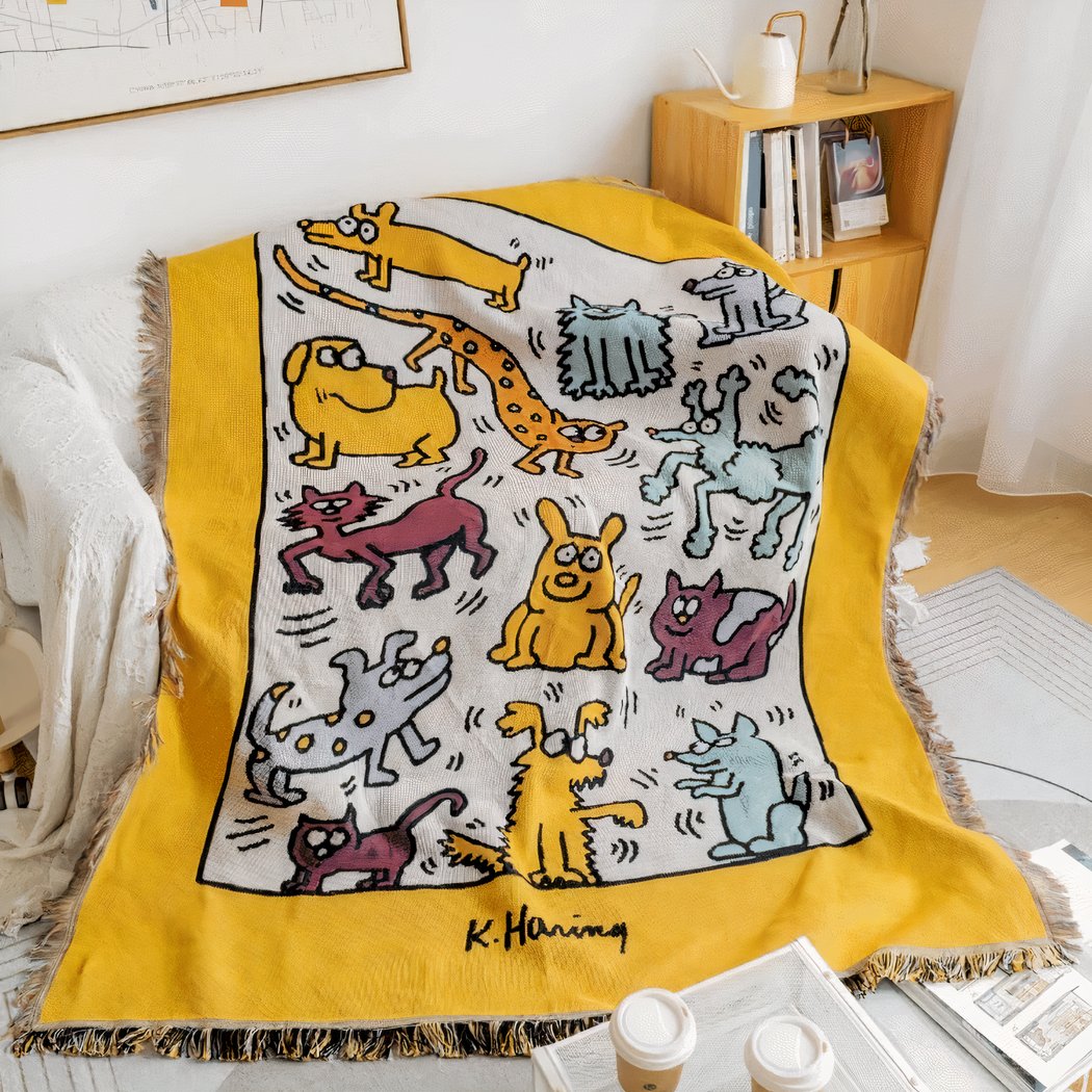 Le jaune pétillant de cette couverture n’est pas son seul atout. En plus de sa couleur chaleureuse, idéale pour illuminer n’importe quelle pièce, elle arbore des motifs cartoon de chats et de chiens qui séduiront petits et grands. Ces adorables motifs apportent une touche ludique et moderne, faisant de cette couverture plus qu’un simple accessoire de lit, mais un élément de décoration à part entière.
