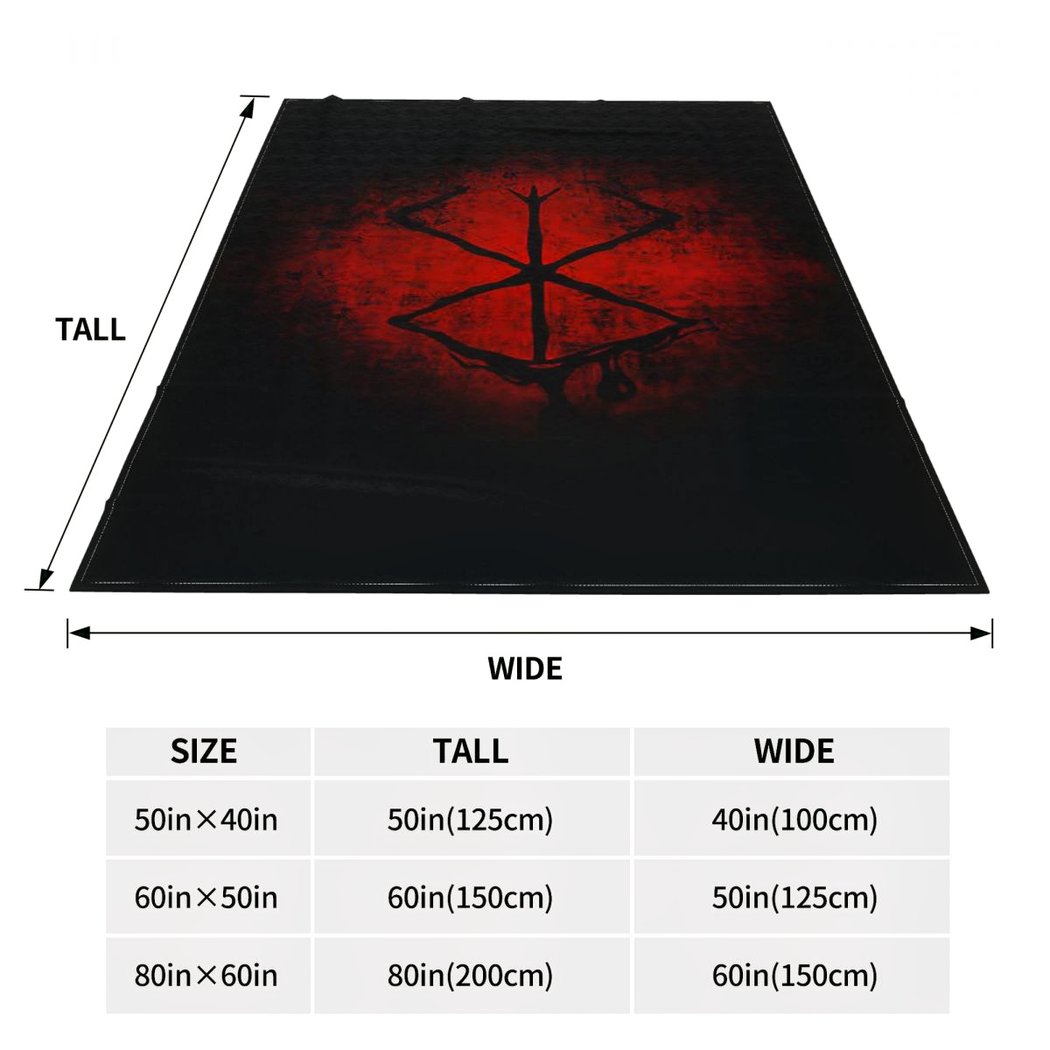 Notre couverture manga Berserk est un produit indispensable pour tous ceux qui veulent une touche rappelant l’univers mythique de cette série Japonaise. Disponible dans différentes tailles, elle sera parfaite aussi bien pour vous blottir dans votre canapé que pour dormir entant que couvre-lit. Cette couverture vous apportera la chaleur dont vous avez besoin pendant l’hiver.