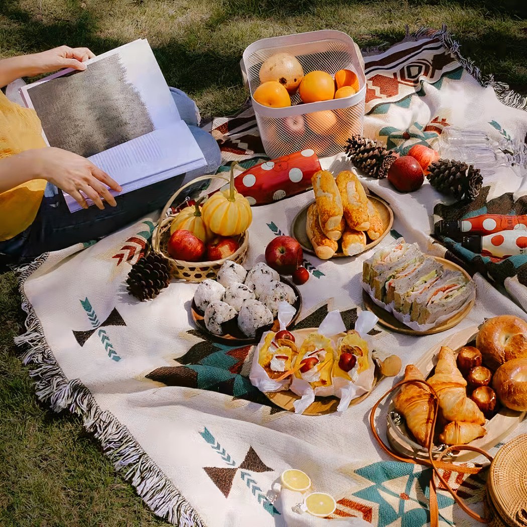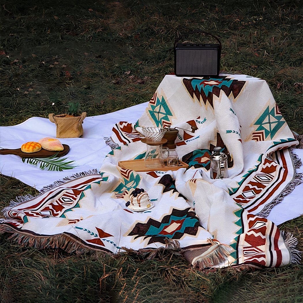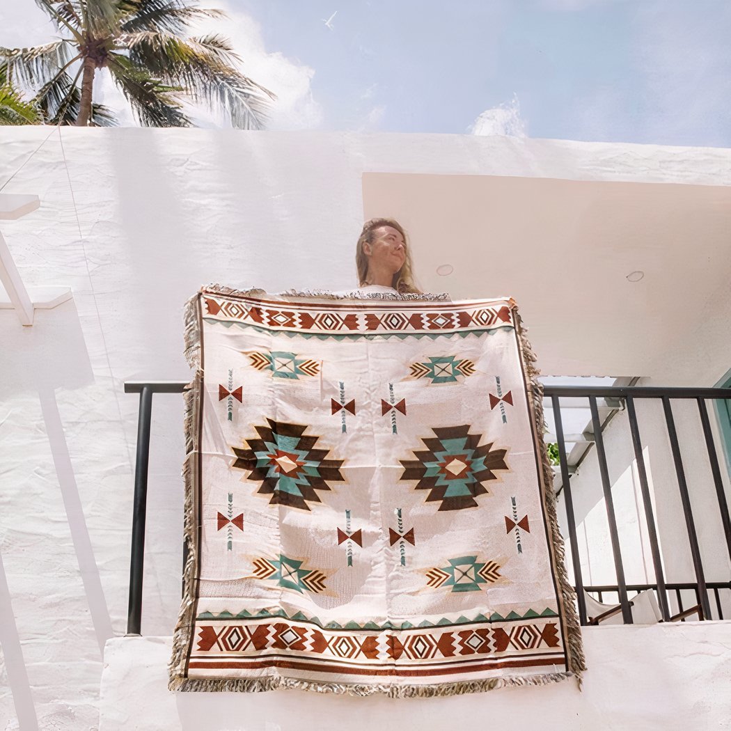 Idéale pour votre intérieur, cette couverture trouvera sa place sur un fauteuil, un canapé, votre lit ou bien une table. Vous adorerez aussi emporter cette jolie couverture avec vous pour la plage ou un pique nique. Elle se plie et se transporte facilement pour vous suivre dans toutes vos aventures et leur donner un air de voyage exotique.