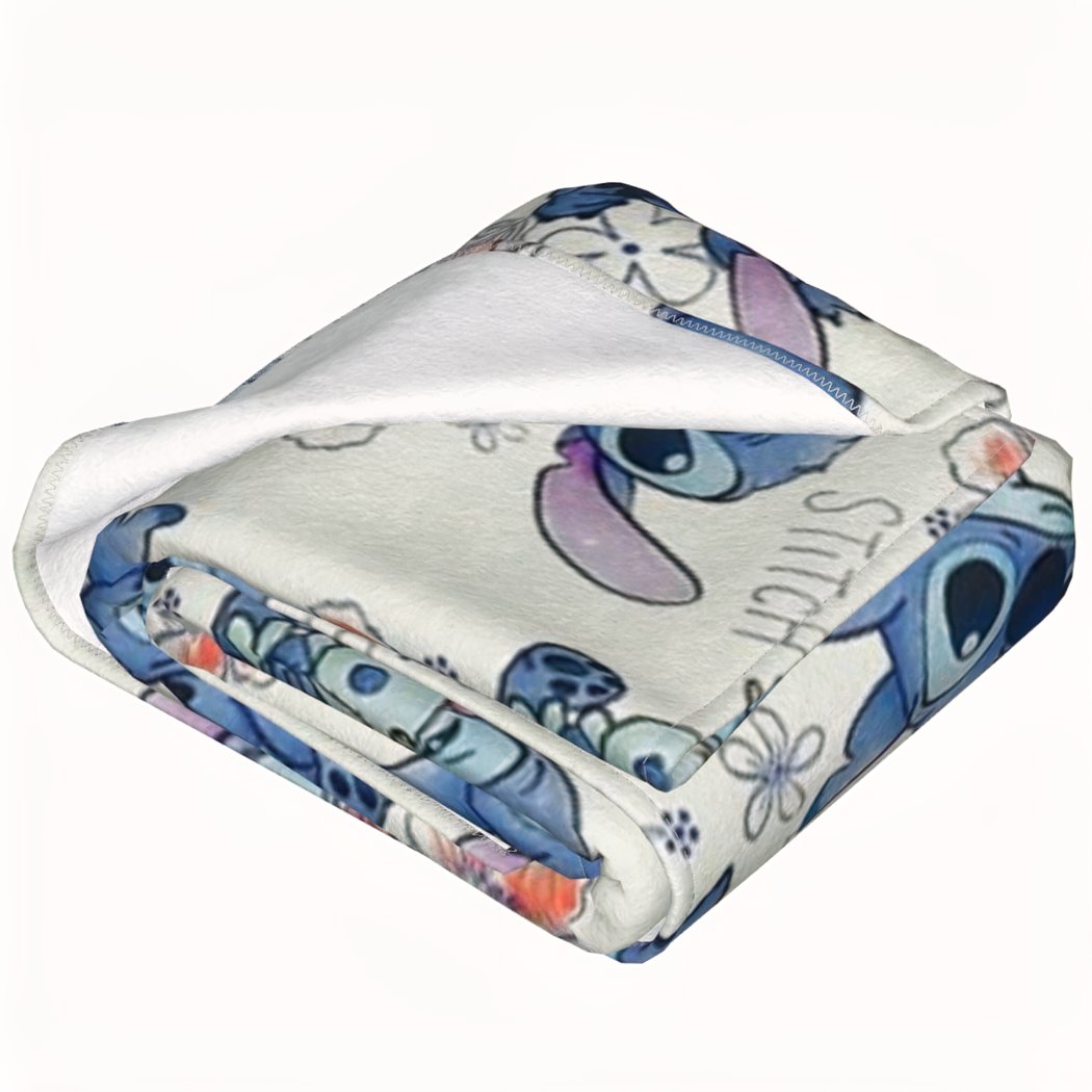 Notre couverture en polaire est parfaite pour passer des soirées confortables à la maison. Fabriquée à partir avec tissu en polaire double face, doux et chaud, elle est imprimé du célèbre petit extra-terrestre bleu Stitch avec des petites fleurs et des feuilles qui lui donne une touche exotique. Choisissez parmi les diverses tailles disponibles pour trouver celle qui vous convient.